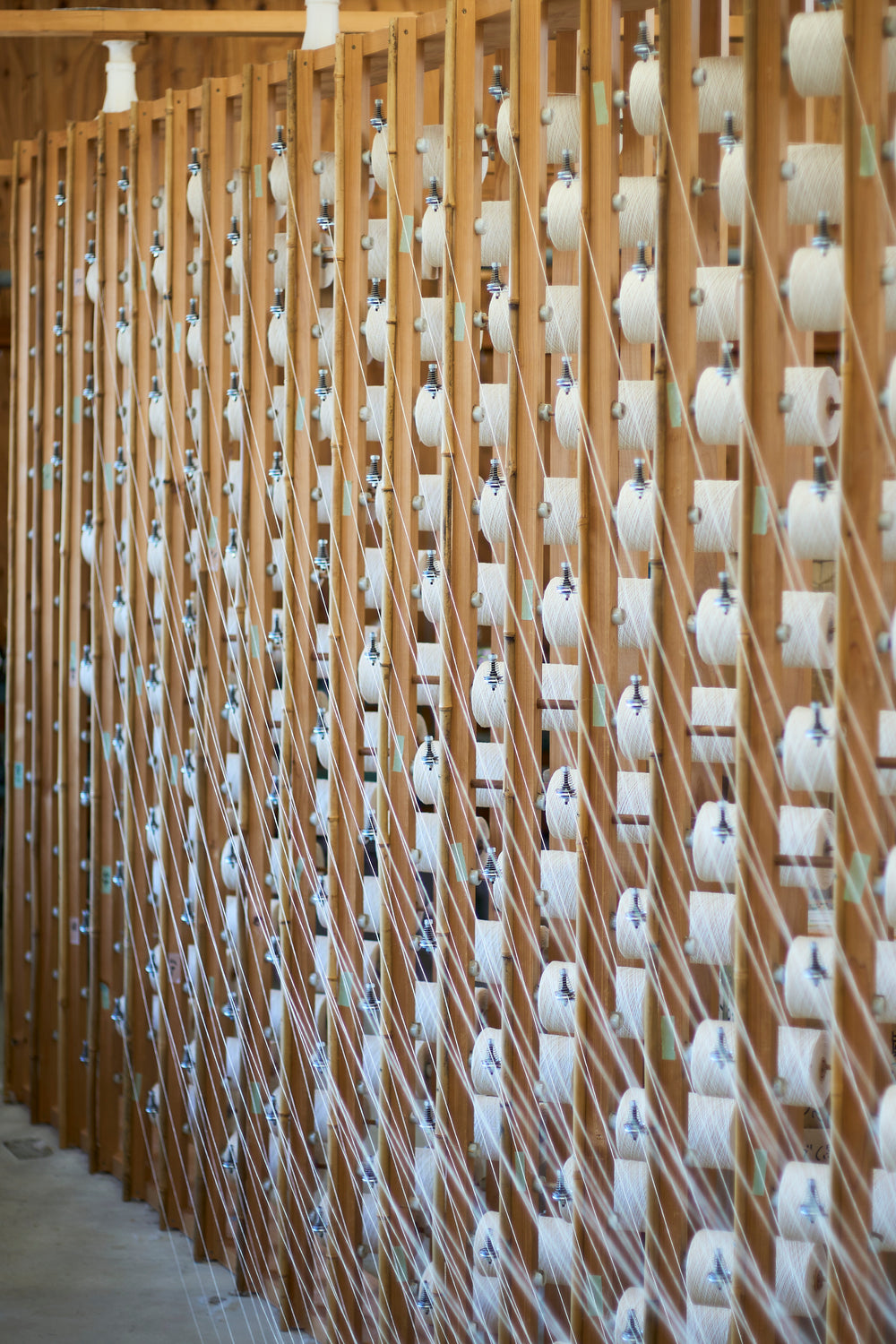 →Using the "Shuttle Loom" invented in the Meiji to Taisho eras, the "No. 1 MAEKAKE" has been woven to bring back the original thickness of old aprons. In terms of thread count, it is woven using threads of "number four" thickness. It is also directly taught by Mr. Haga that it is possible to simultaneously achieve what seem to be contradictory things: "thick" and "soft". Its greatest feature is its thick, long-lasting fabric.