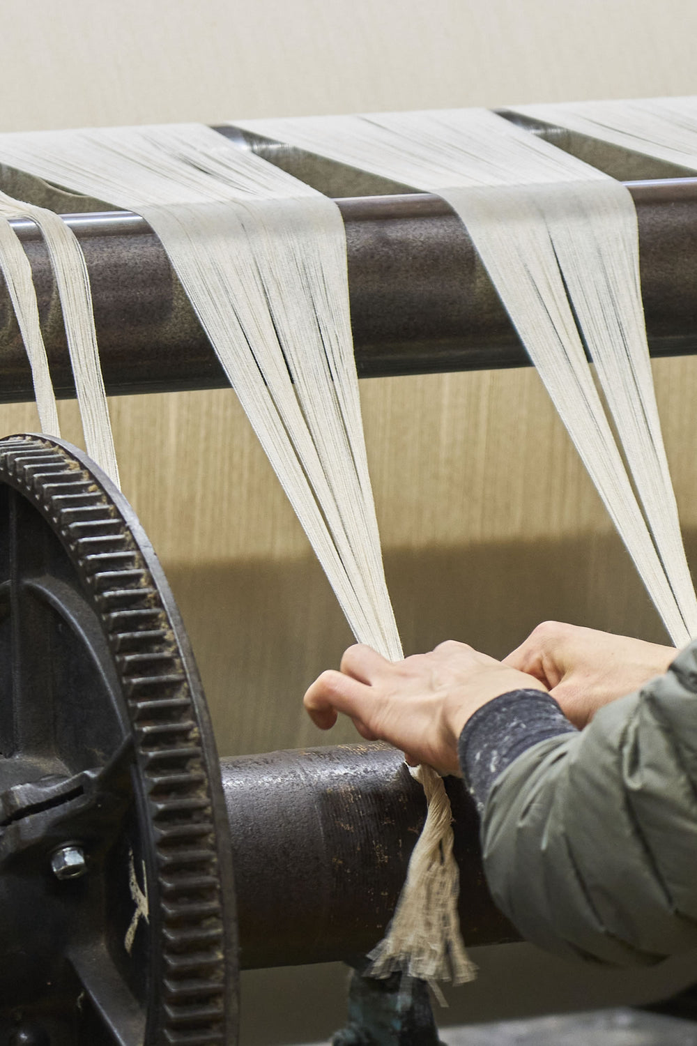→The texture of a woven fabric changes greatly depending on how the warp and weft threads are woven. Unlike ordinary "canvas", the threads and weaving method are carefully selected to create a soft fabric that naturally fits the body.