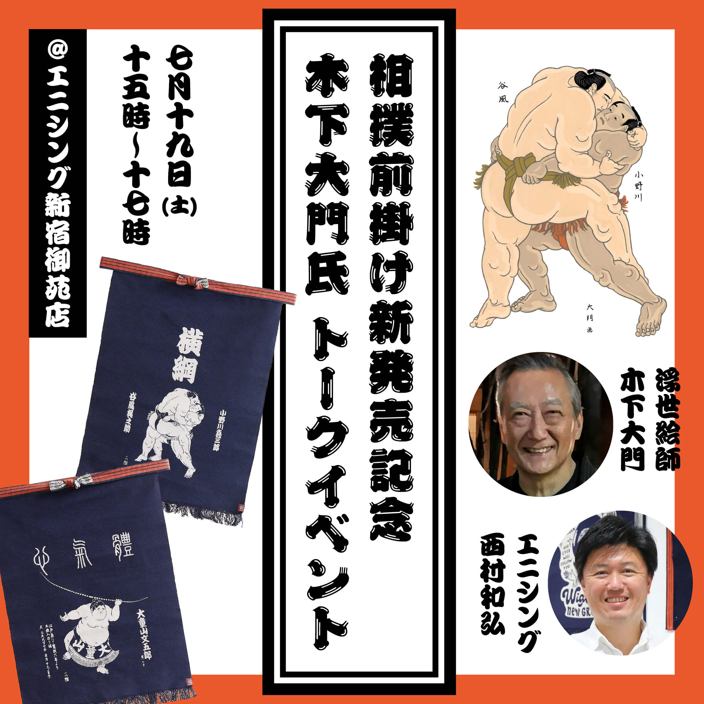 Kinoshita Daimon will talk about sumo nishiki-e and explain the design of the sumo aprons that will be released this time. In addition, Nishimura, CEO of Anything, will talk about "sumo's mawashi and aprons."