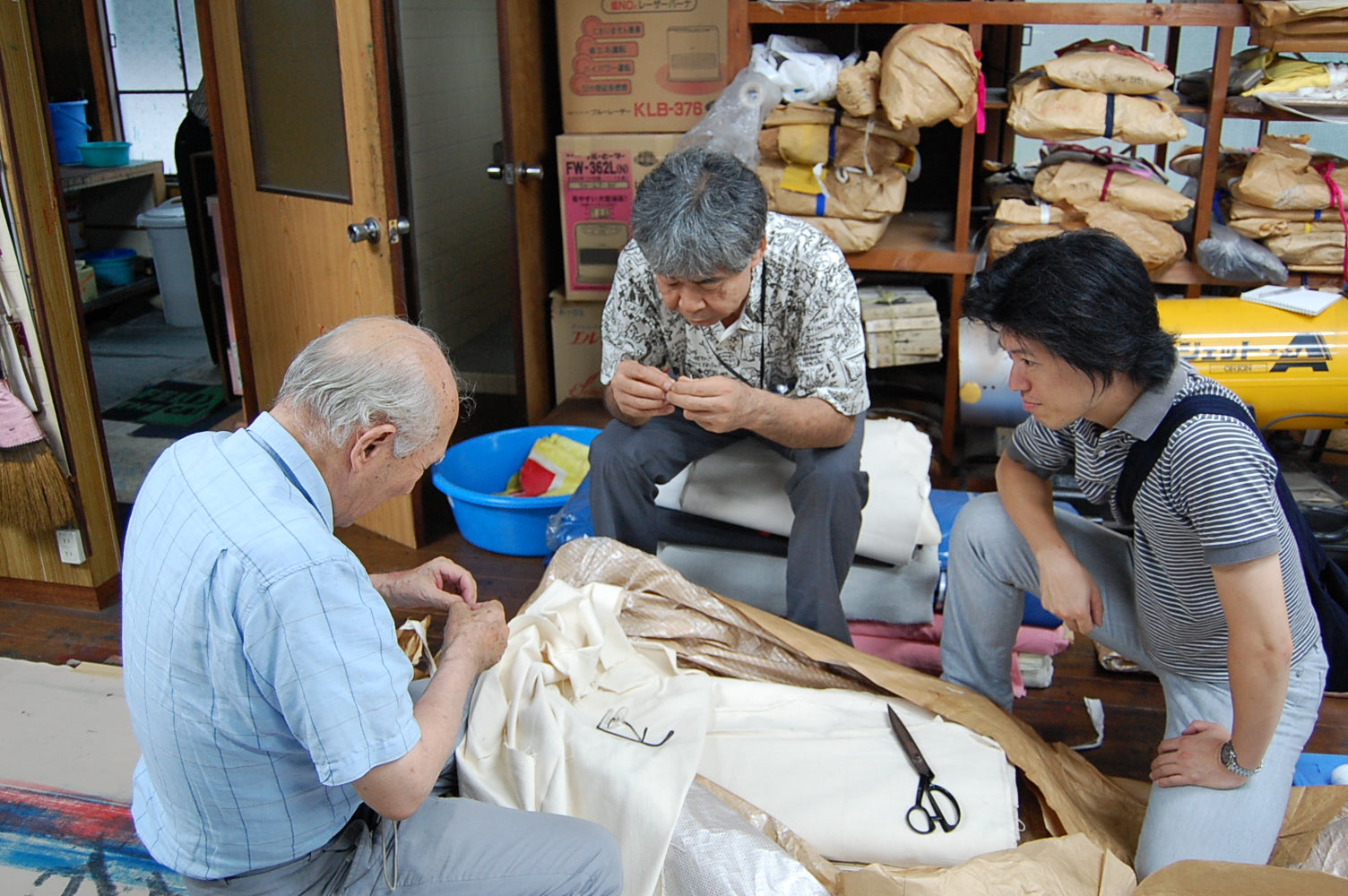 →厚手の生地をやわらかく、色落ちもほとんどなく染める。エニシングの染め生地は、洗濯堅牢度の検査でも高いランクを保っています。染めは主に東京都内で行っています。